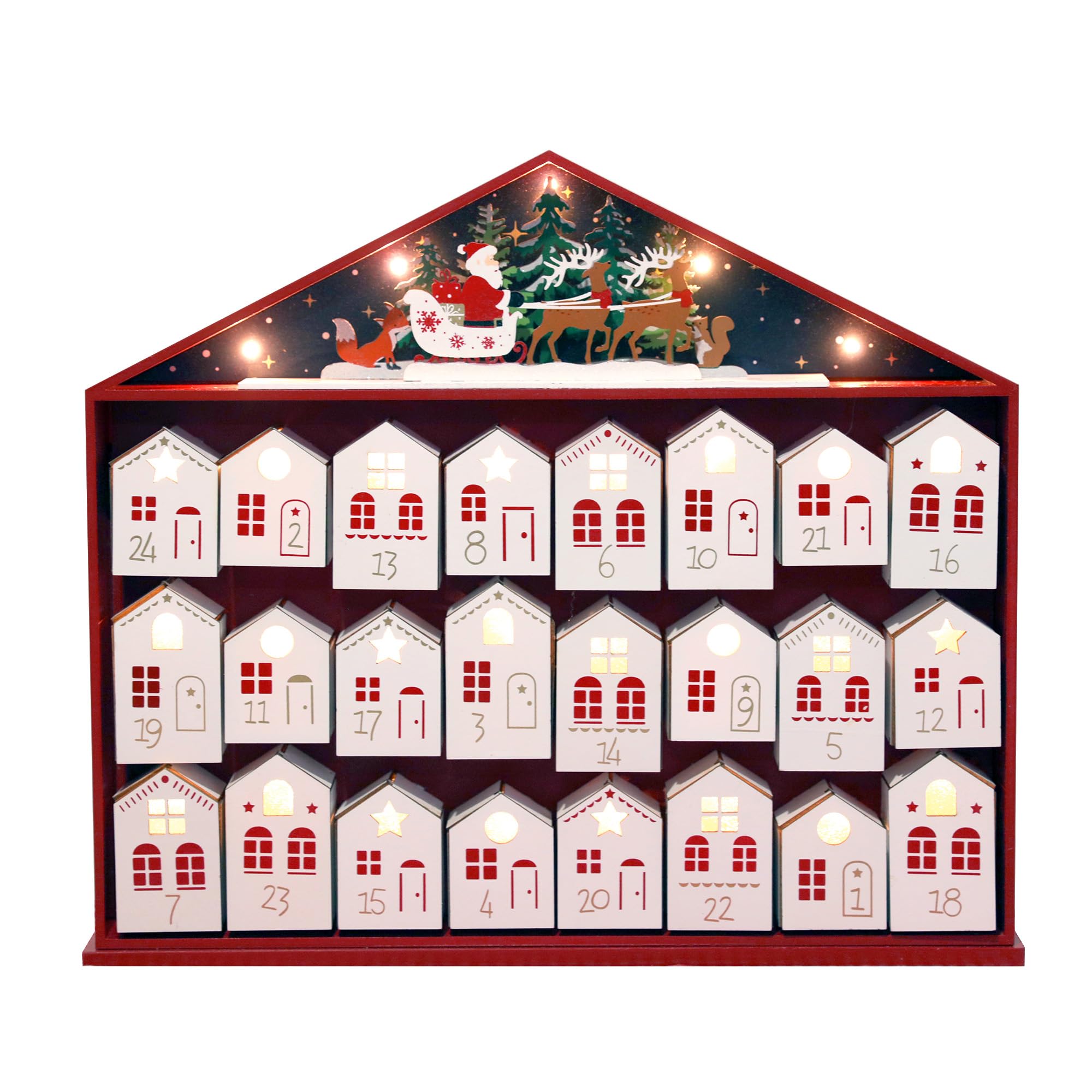 | PE Christmas Wood Advent Kalendarz Dom Duży z diodami LED i 24 szuflady - Boże Narodzenie kalendarz z Santa i renifery - świąteczne dekoracje do napełniania 44,2 x 6,6 x 39,2cm | B0CZKNT2WD | 1 | 16.96 | 121.11 | |