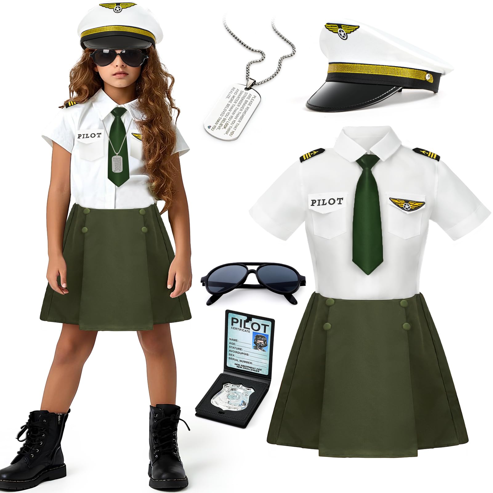 | Tacobear Kostium pilota dla dziewczynki, sukienka lotniczka, z czapką, okulary przeciwsłoneczne, naszyjnik, kapitan pilotka, zestaw na karnawał, Halloween, karnawał, Boże Narodzenie | B0FFMPKBGD | 1 | 8.52 | 70.9 |