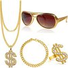 | 4 szt. Zestaw kostiumów hip-hopowych dla mężczyzn, lata 70/80/90-te, akcesoria rapera, znak dolara, naszyjnik, złoty pierścień, okulary przeciwsłoneczne, akcesoria do imprez rapowych, koncertów, Metal | B0BVZRGL8T | 47 | 177.7 | 1777.07 | |