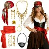 | 11 sztuk kostium piracki dla kobiet, średniowieczny kostium kapitana, akcesoria z chustką na głowę, pasek, kolczyki, maska na oczy, pierścionek, łańcuszek z trupią czaszką, kolczyki, spiralne szpilki | B0DW7KTM1M | 1 | 7.99 | 53.3 | |