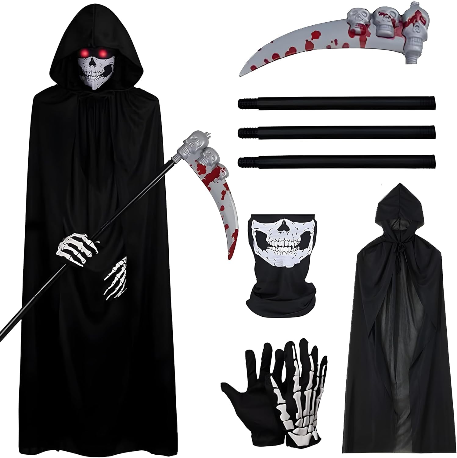 YeahBoom Sensenmann Kostüm,Grim Reaper Kostüm Erwachsene,Halloween Sensenmann Kostüm Set,Halloween kostüm Erwachsener sensenmann,Gruselige Hallo-ween kostüm,Uniseks cape met lange capuchon | B0CFXTT3S9 | 1 | 5.04 | 50.22 |