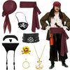 | 8 szt. Halloween kostium piracki akcesoria dla kobiet i mężczyzn, średniowieczny kapitan piratów, zestaw przebrania z chustką na głowę, pasek, naszyjnik, bransoletka, opaska na oczy, kółka, | B0DFY295K3 | 2 | 9.31 | 93.26 | |
