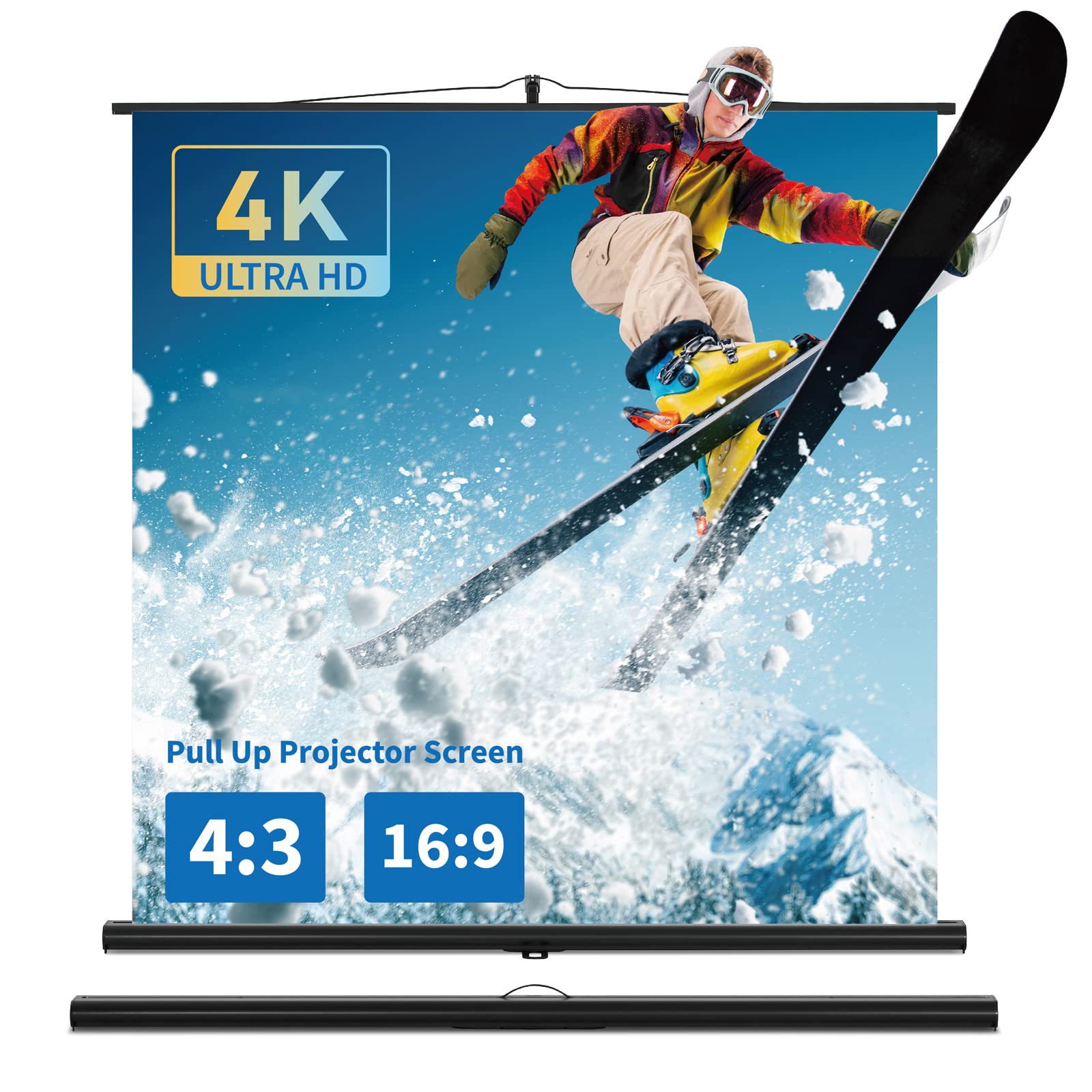 | Podnoszone płótno do projektora ze stojakiem, przenośne płótno projekcyjne, dostępny rozmiar od 81,3 cala / 16:9, 88,5 cala / 4:3 do 100 cali / 1:1, 4K, kompaktowa konstrukcja, idealne do kina | B0BNKZCHBM | 1 | 157.19 | 628.78 |