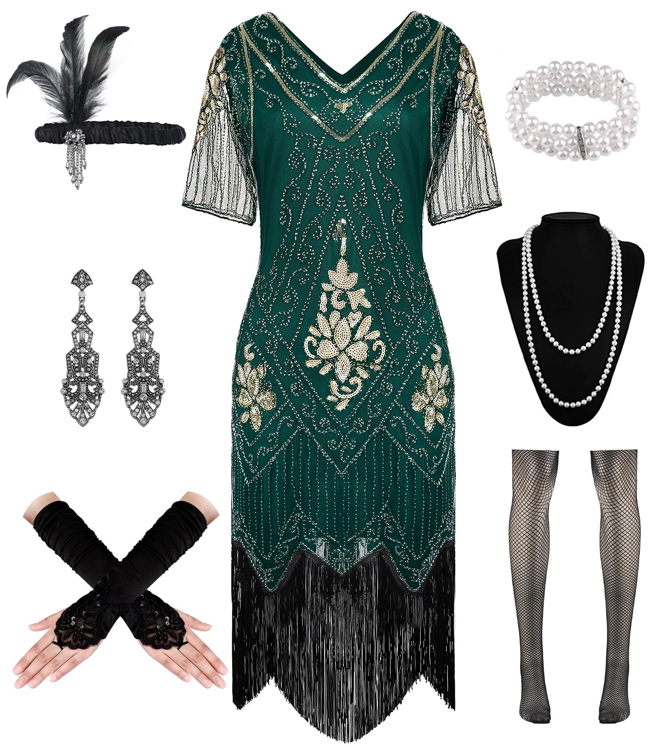 | WILDPARTY Kostium damski w stylu lat 20. XX wieku, sukienka Charleston, sukienka z cienkimi rękawami, cekinami, perłami, frędzlami, sukienka koktajlowa, akcesoria w stylu vintage, mafii, kostium XL Złoty Zielony | B0CNT35ZX9 | 1 | 17.51 | 174.98 |
