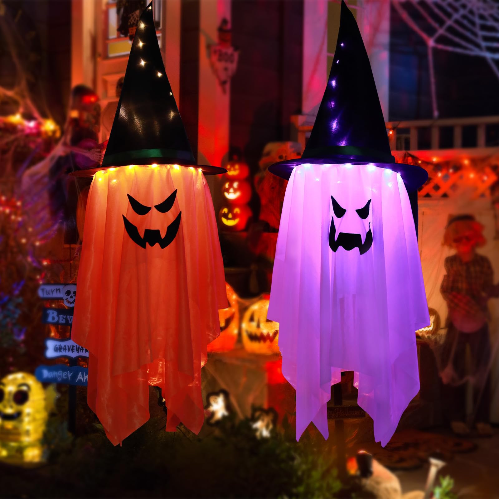 | Przerażająca dekoracja na Halloween, 2 sztuki, wiszące duchy i czarownice z łańcuchem świetlnym LED, zasilanie bateryjne, do wyposażenia wnętrz i ogrodu | B0D8T9HTGQ | 15 | 84.63 | 846.15 |