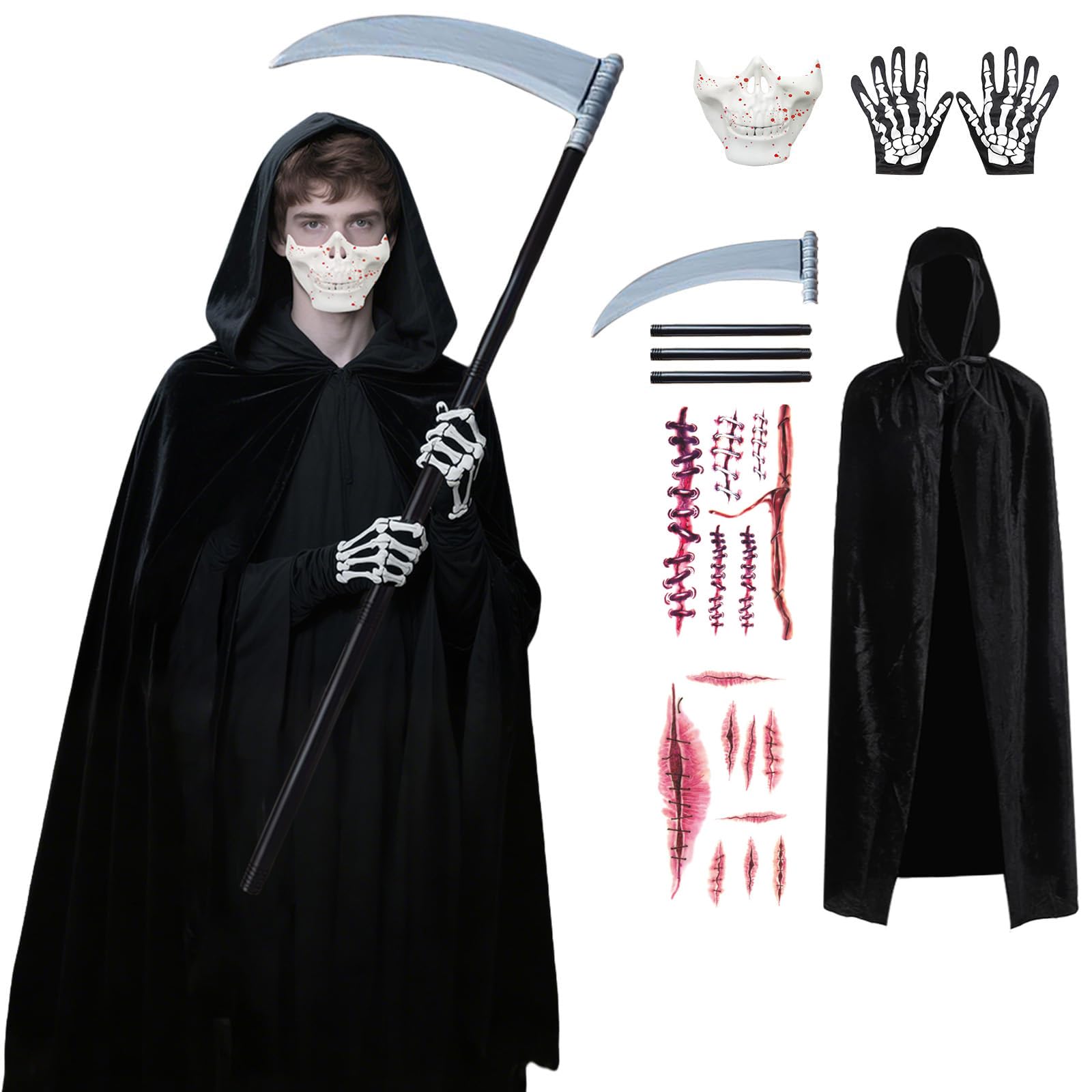| Zestaw peleryny na Halloween, maska na twarz, rękawiczki, kosa, na imprezę Halloween, dekoracja Cosplay (L) | B07XMGH7FD | 5 | 32.21 | 268.4 | |