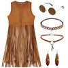 | Kostium hipisowski damski zestaw w stylu lat 60. i 70., fantazyjne przebranie, ubrania dla hipisowskich kobiet, brązowa kamizelka z frędzlami, akcesoria hipisowskie, opaska na głowę, kolczyki, | B0D2KR46BR | 1 | 5.09 | 72.46 | |