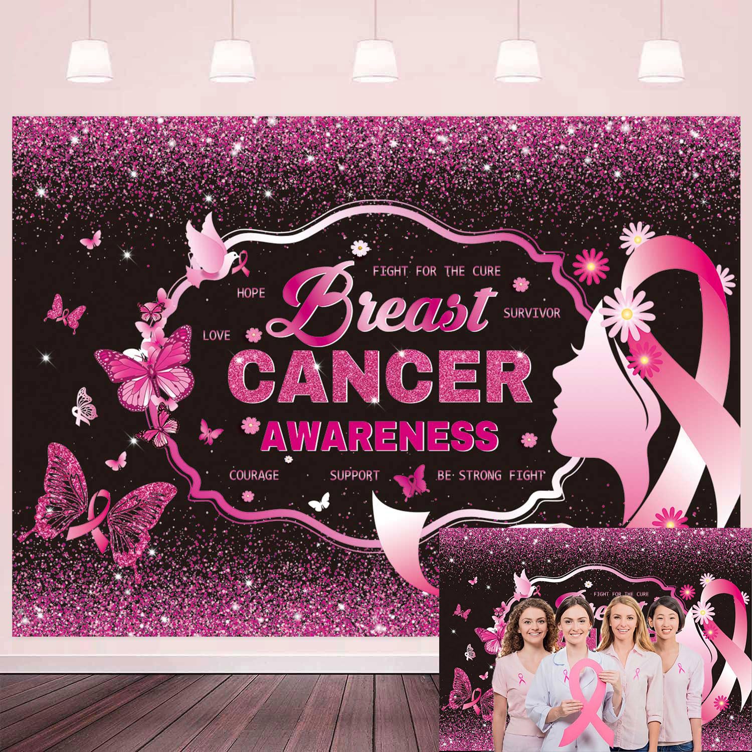 | Tło świadomości raka piersi do fotografii różowa wstążka tło październik miesiąc raka piersi baner biuro dom działania charytatywne rak piersi dekoracja na imprezę (15 x 100 cm) | B0D533R1G7 | 1 | 5.69 | 35.61 |