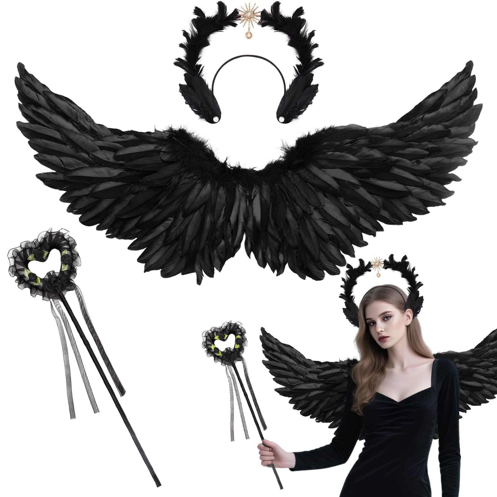 | Czarne skrzydła anioła z zestawem deluxe aureoli, duże skrzydła anioła, Halloween, kostium skrzydła diabła, skrzydła 80 cm, dla dorosłych, dzieci, kobiet, dziewcząt, na karnawał, imprezę, karnawał | B0D25XV2YY | 3 | 16.39 | 204.81 |