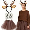 | Damski kostium karnawałowy renifera, zestaw kostiumowy sarny, opaska na włosy, poroże renifera, tatuaż na twarz, brązowa spódnica tutu na karnawał, imprezę tematyczną i cosplay | B0G8HGW3VT | 1 | 3.25 | 46.74 | |
