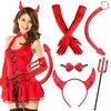 | SelfTek Zestaw kostiumów diabeł, opaska na głowę z czerwonymi rogami, muszka, ogon, rękawiczki i widelec, seksowny strój dla dorosłych, dzieci, Halloween | B0CBB6NWZ4 | 16 | 32.26 | 460.64 | |
