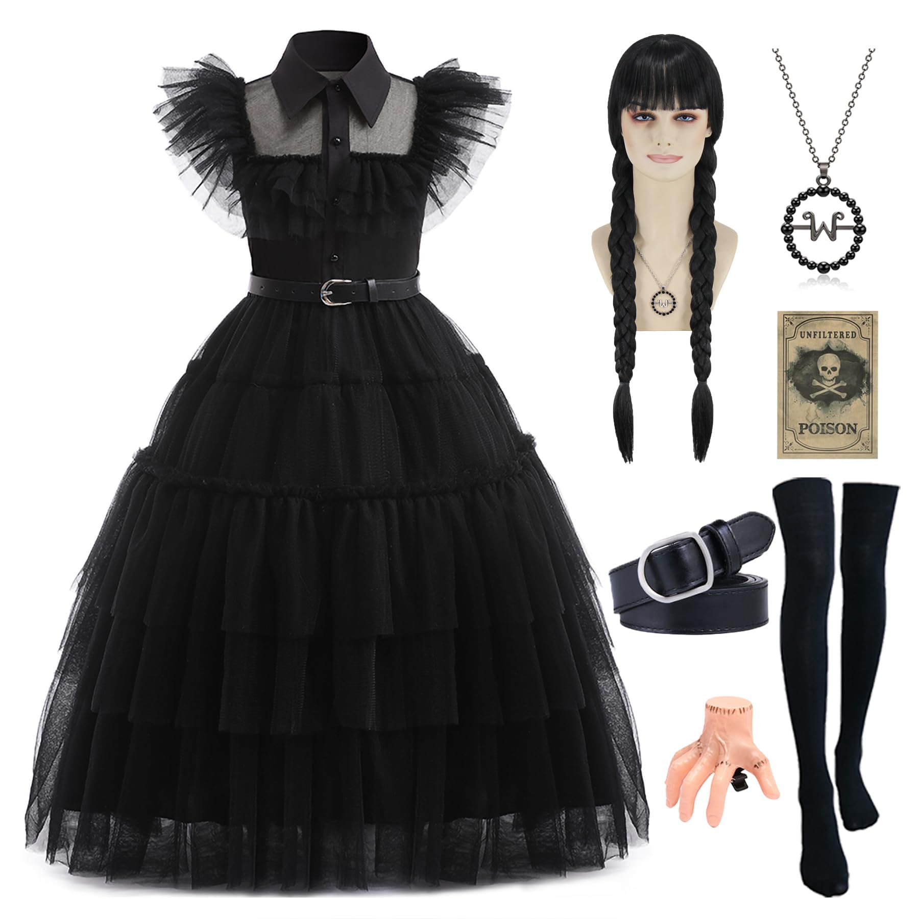 | Mrsclaus Kostium na Halloween, zestaw dla rodziny addamsów, z rzeczami, podkolanówki, czarna sukienka damska, karnawał, Cosplay, impreza C011 | B0C9SK2DJ7 | 3 | 30.24 | 432.18 | |