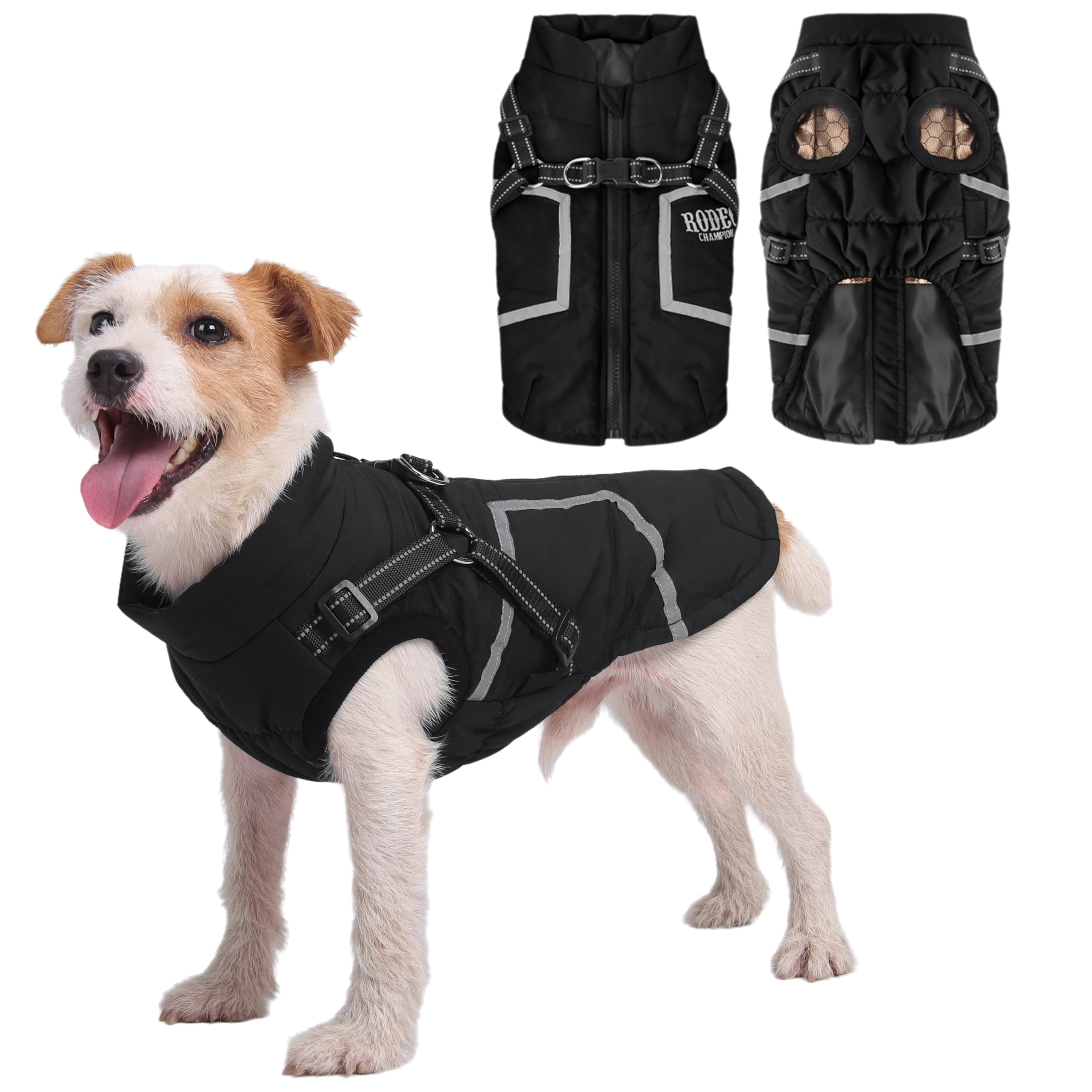 | Płaszcz dla psa z uprzężą, wodoszczelny, ciepły płaszcz dla psa, płaszcz zimowy dla psów, kurtka dla psa z zamkiem błyskawicznym, odblaski na zimną pogodę, śnieg i deszcz, na zewnątrz [czarny | B0FHQHGMCM | 1 | 3.67 | 41.03 |