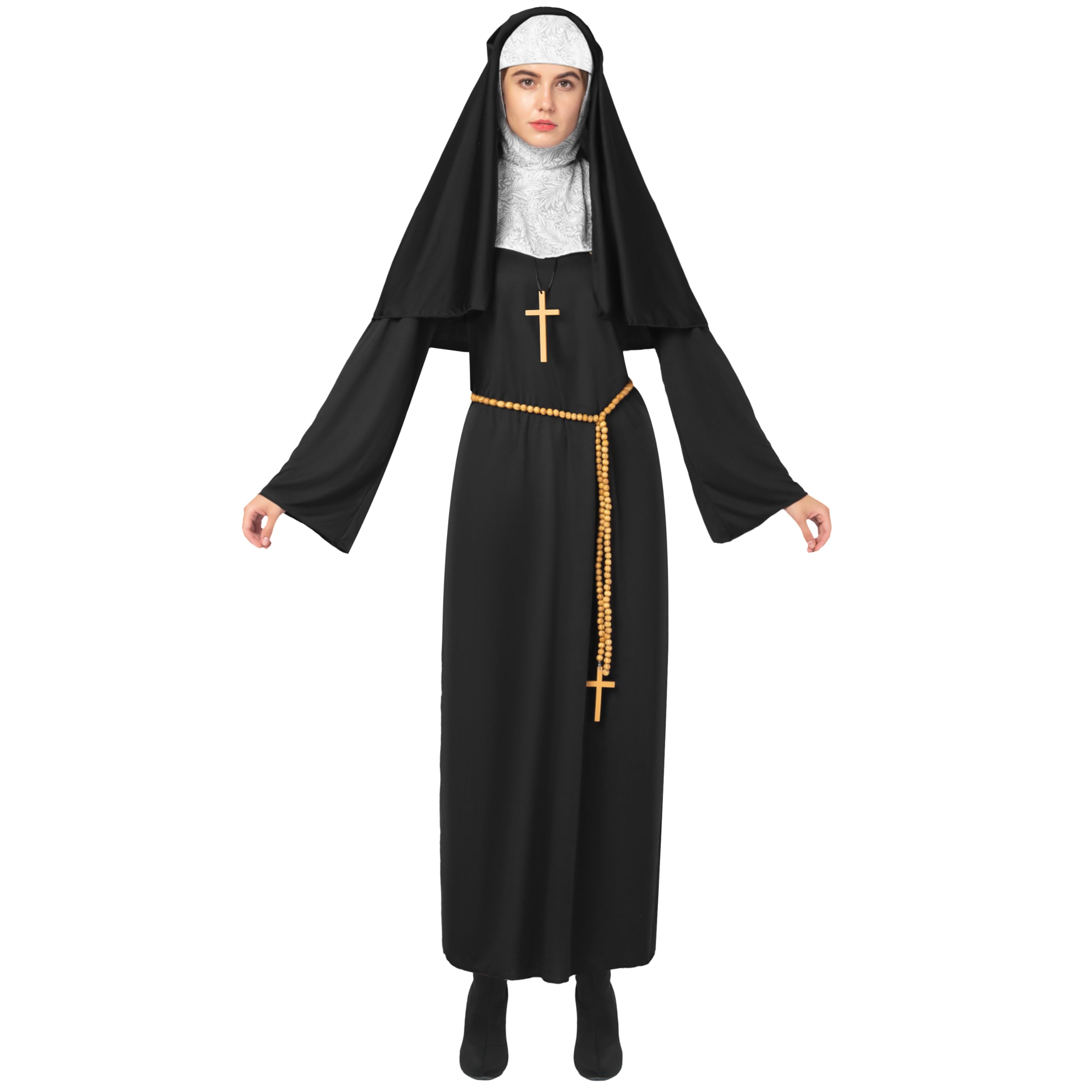| Spooktacular Creations Kostium zakonnicy dla kobiet na Halloween z dołączonym kołnierzem, złotym krzyżem i paskiem do drapowania, fantazyjna sukienka na Halloween | B07Y4WRMVP | 1 | 9.01 | 90.09 |