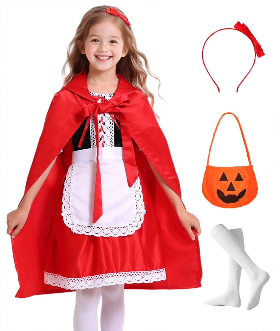 | Dziewczęcy kostium Czerwonego Kapturka, peleryna dla dzieci, Little Red Riding Hood Costume Costume Cape Carnival Boże Narodzenie, impreza, Cosplay, strój z fartuchem, opaska | B0CN49686Z | 7 | 19.51 | 325.5 |