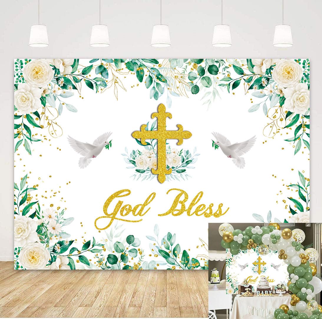 | Boże błogosław tło na pierwszą komunię świętą chrzest tło fotograficzne zielone i złote liście eukaliptusa biały kwiatowy baner noworodek baby shower dekoracja fotobudka rekwizyty (20 x 150 cm) | B0DNMPD77S | 1 | 8.97 | 81.64 |