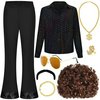 | PLULON Męski kostium dyskotekowy w stylu lat 70. Dude z cekinami, zestaw z peruką, okulary przeciwsłoneczne, wąsy, znak dolara, pierścień łańcuszkowy, akcesoria dyskotekowe XL czarny | B0C1C7X9NN | 1 | 9.01 | 128.78 | |