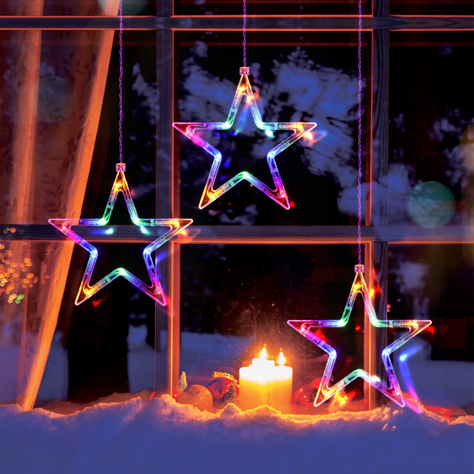 | Dekoracja świąteczna z 3 gwiazdami, 30 diod LED, dekoracja okien z gwiazdą z timerem, funkcją pamięci, wewnątrz zasilanie bateryjne, ciepła biel i wielokolorowa iluminacja gwiazdy | B0C3QPW9VN | 1 | 3.99 | 56.76 |