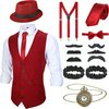 | Blulu Akcesoria męskie w stylu lat 20., Gatsby, gangster, strój, kostium Cosplay z kamizelką, kapelusz Fedora, zegarek kieszonkowy, szelki, mucha dla mężczyzn, Halloween, Cosplay m Czerwony (Weinrot) | B09BVH8L26 | 1 | 6.31 | 90.09 | |