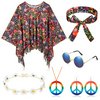 | HICARER Zestaw 6 kostiumów hipisowskich łącznie z ponczo hipisowskim znakiem pokoju, naszyjnik, kolczyki, opaska na czoło, okulary przeciwsłoneczne, lata 60. 70., odzież akcesoria dla kobiet Stylowy | B0CC1DTQKL | 1 | 5.39 | 107.86 | |