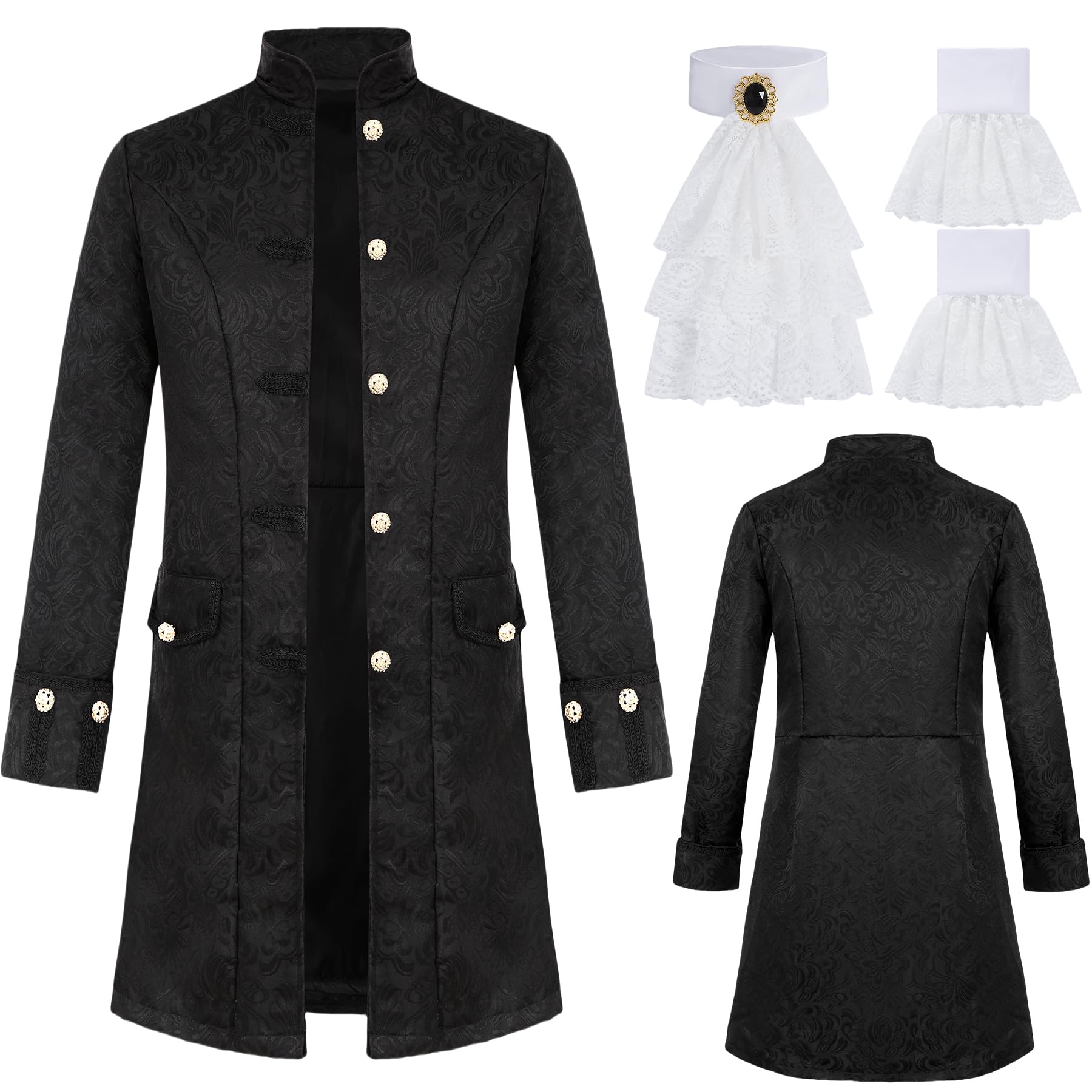 | Steampunk płaszcz męski w stylu vintage, gotycki, kurtka średniowieczna, odzież wiktoriańska, piraci, wampir, cosplay, kostium karnawałowy, trencz z żabotem z koronki, na karnawał, ostatki | B0DPJCJ89F | 1 | 5.39 | 71.9 |