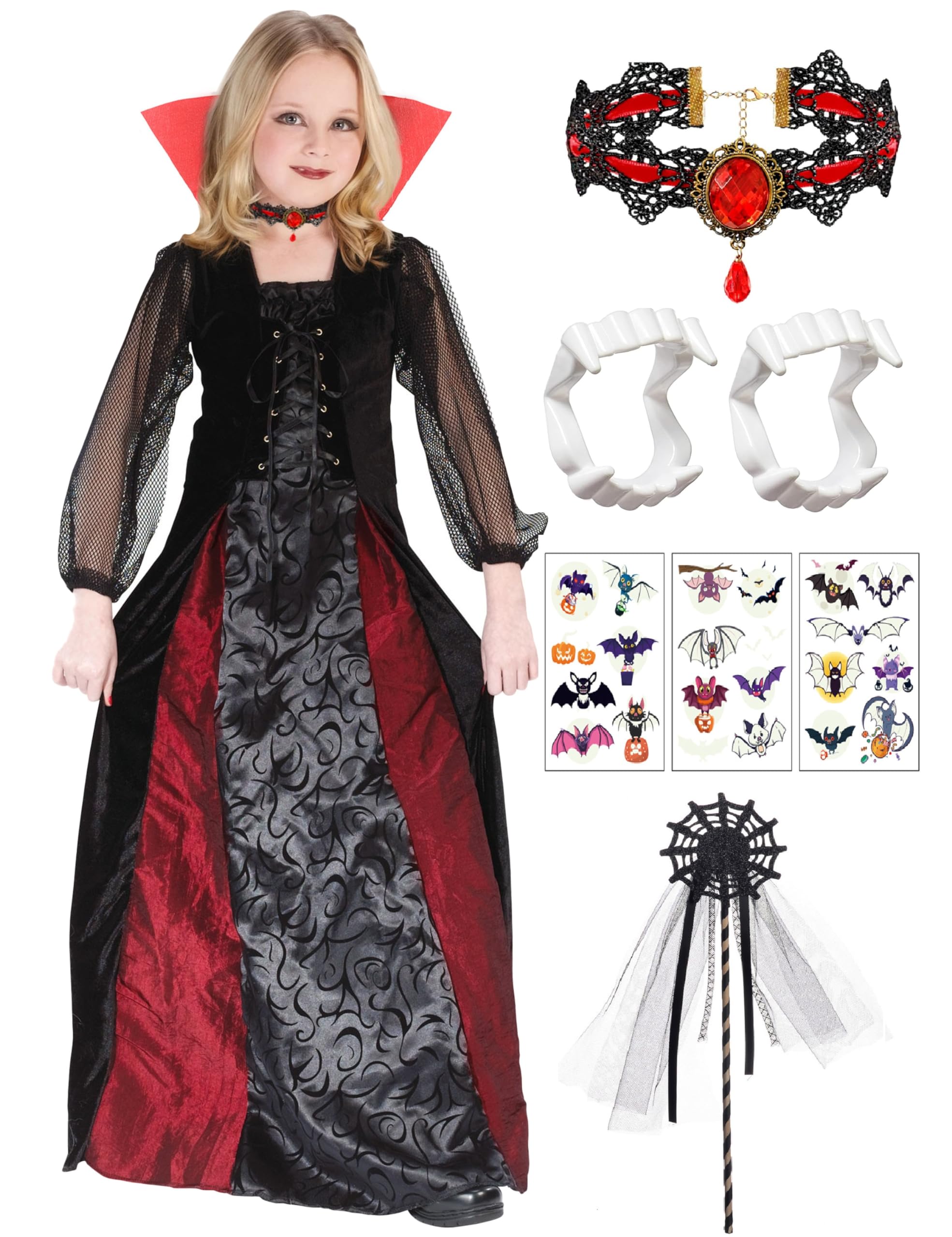 | Mrsclaus Kostium wampira dla dziewczynki na Halloween, kostium królowej wampira, sukienka z obrożą i ugryzieniem wampira dla dzieci, naszyjnik na karnawał, imprezę tematyczną, Dracula Cosplay Party | B0CD462PFR | 4 | 12.74 | 255.16 |