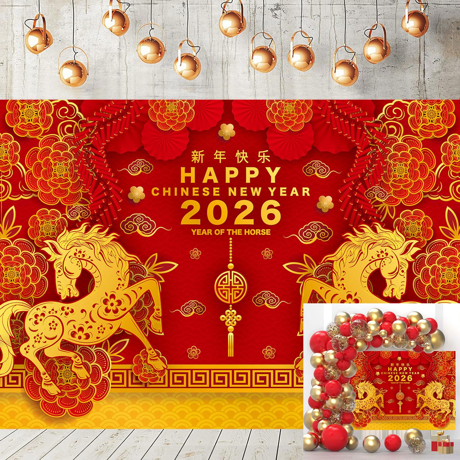 | Chiński Nowy Rok Tło 2026 Czerwone Złoto Chiński Festiwal Wiosny Księżycowy Rok Konia Tło Sylwestrowa Impreza Dekoracja Rodzinna Fotobudka Rekwizyty (18 x 132 cm) | B0FSQDRF6Y | 1 | 1.97 | 39.2 |