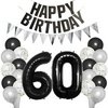 | Zestaw dekoracyjny na 60 urodziny 60 lat dekoracja urodzinowa balony mężczyźni kobiety czarny Happy Birthday baner srebrny błyszczący trójkąty baner konfetti balony czarne balon foliowy liczba 60 | B09ZTWCRMX | 1 | 1.46 | 28.72 | |