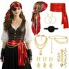 | SelfTek Damski kostium piracki na karnawał, 7 sztuk, średniowieczny kostium piracki, akcesoria, chustka na głowę, naszyjnik, pas biodrowy, kolczyki, ozdoba do włosów, opaska na oczy, na karnawał | B0FJ8N452P | 1 | 2.53 | 50.12 | |