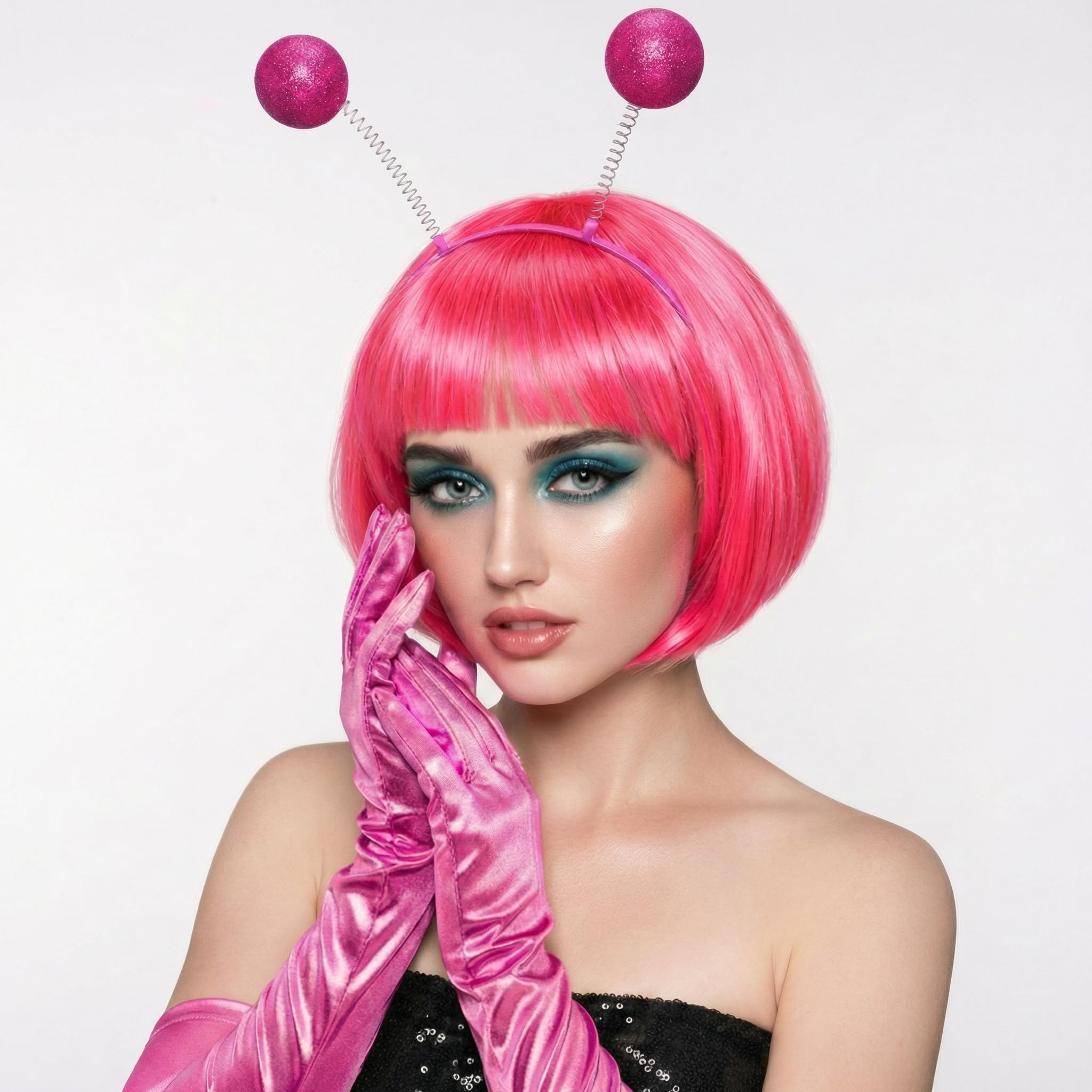 | Zomiboo Damen Alien Kostüm Set Metallic Glitzer Alien Stirnband Bob Perücke Haarreif Handschuhe Damen Karneval Space Kostüm Rave Outfit für Cosplay Fasching Party Halloween (Rosa) | B0DXKTS3L6 | 1 | 3.15 | 39.36 |