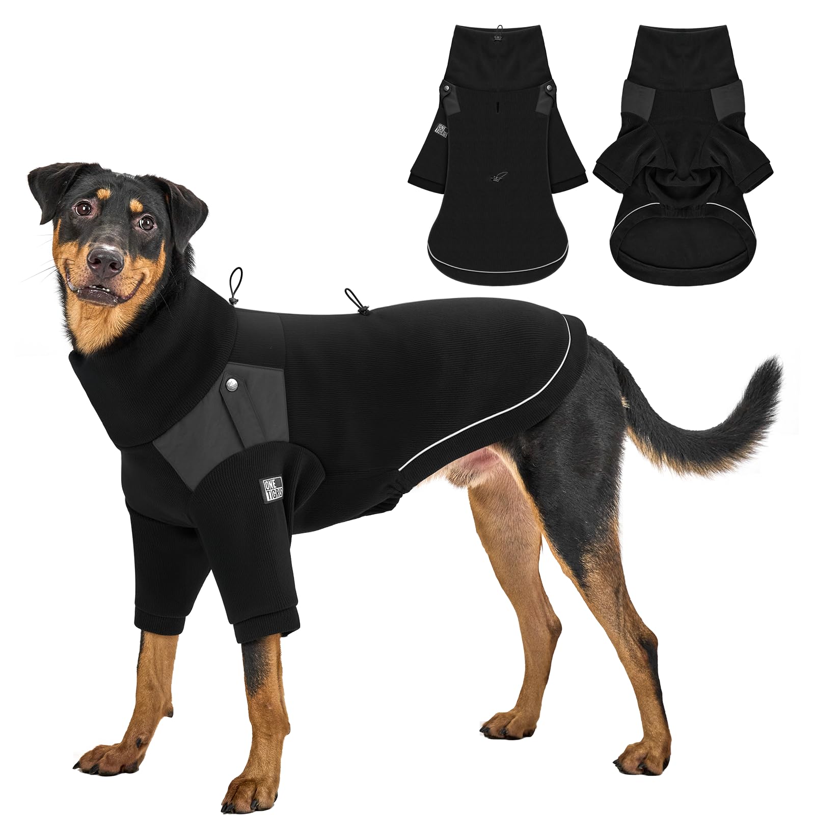 | OneTigris Sweter dla psa, płaszcz dla psa, płaszcz polarowy ze szlufką na nogi i otworem na uprząż, praktyczny do wydalania, sweter z golfem, poliester z recyklingu, rozciągliwa kurtka dla psa czarny L: 27–41kg (Brust: 77cm, Hals: 60cm) | B0FQ5R1GP5 | 12 | 123.6 | 1235.88 |