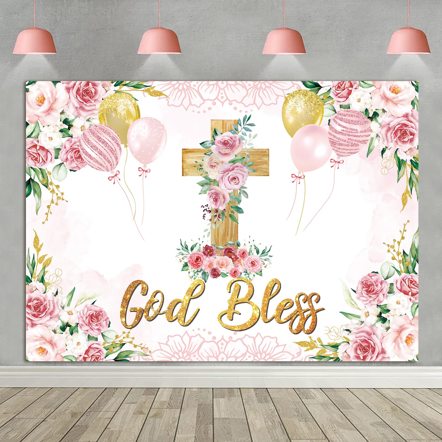 | God Bless tło, pierwsza komunia, chrzest, tło, różowe kwiaty, dekoracja, chrzciny, fotografia, tło, baby shower, baner, fotobudka, rekwizyty, 208 x 150 cm | B0CNVJ3N11 | 20 | 39.26 | 785.2 |