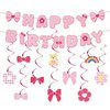 | Baner Urodzinowy Motywem Kreskówek, Kreskówek Różowa Kokardka Dekoracja Urodzinowa z 10 Różowymi Wiszącymi Spiralami Idealna na Baby Shower dla Dziewczynek | B0FN7H27T2 | 3 | 4.16 | 83.07 | |