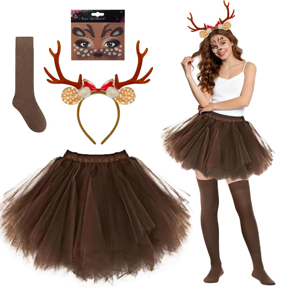 | Kostium renifera, kostium jelenia dla kobiet z opaską na głowę, karibu, naklejki, skarpetki, impreza, Halloween, Boże Narodzenie, karnawał, akcesoria odzieżowe | B0G1MCC3NP | 2 | 4.3 | 85.88 |