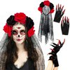 | YGCHEN Halloween Tag der Toten Haarreif, Rot Nagelhandschuhe, Geisterbraut Stirnband mit Blumen und Schleier, Halloween Fingernägel Handschuhe, Halloween Kostüm Accessoires | B0DB72CBMP | 7 | 24.25 | 302.96 | |