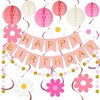| Nhgkju Cały zestaw dekoracji urodzinowych, baner Happy Birthday, baner z kulkami o strukturze plastra miodu, motyle/gwiazdy, wiszący, wstążki, groty, dekoracja girlandy (różowe kwiaty) | B0DMZHH9ZY | 1 | 4.5 | 56.37 | |