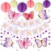 | Nhgkju Cały zestaw dekoracji urodzinowych, baner Happy Birthday, baner z kulkami o strukturze plastra miodu, motyle/gwiazdy, wiszące wstążki, wstążki w kropki, dekoracja girlandy (fioletowe motyle) | B0DMZYK4TF | 1 | 4.5 | 56.37 | |