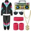 | FOVER Strój w stylu lat 80. XX wieku, kostium dla mężczyzn, kobiet, dres treningowy, pop-art, retro, zestaw akcesoriów do kostiumu, z nadmuchiwanym radiem, okularami przeciwsłonecznymi, naszyjnikiem, | B0DBPYS52V | 1 | 18.4 | 141.37 | |