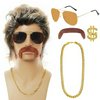 | CXNXFD Zestaw 5 kostiumów dla mężczyzn w stylu hipisowskim, afro, okulary przeciwsłoneczne, naszyjnik, wąsy, punk, złoty łańcuszek i pierścionek z lat 50. 60. 70. 80., akcesoria kostiumowe na imprezę | B0DMW7Z4FH | 1 | 5.05 | 38.9 | |