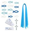 | 60 sztuk drewnianych rybek i 20 karteczek "Schön, dass du da bist!" i 20 wstążek, niebiesko-białe ryby dekoracja stołu na chrzest, bierzmowanie, komunię | B082TQGGKP | 4 | 7.91 | 113 | |