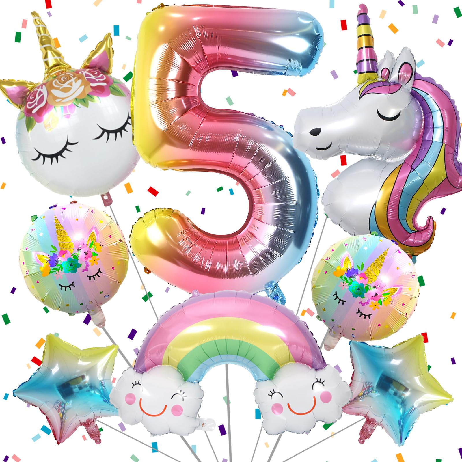| Balon w kształcie jednorożca dla dziewczynek na 5. urodziny, dekoracja foliowa, okrągły jednorożec, tęcza, gwiazdy i cyfry, 5 balonów foliowych do dekoracji urodzinowych, dla dziewczynek w wieku 5 | B0BC8S4QLP | 45 | 77.34 | 1189.8 | |