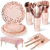 | 141 szt. Różowe i różowe złoto naczyń imprezowych, akcesoria imprezowe, wielokrotnego użytku zestaw talerzy papierowych, w tym obrus talerze kubki serwetki na urodziny, wesela, jubileusz (20 gości) | B09WYTDFGF | 1 | 6.1 | 87.32 | |