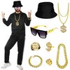 | Raper z lat 90. XX wieku, męski zestaw kostiumowy z akcesoriami do kostiumu, kapelusz rybacki, pierścionki, naszyjnik, bransoletka, płaskie okulary z czarną oprawką, Mardi Gras, Halloween, kostium na | B0D6BKMGV2 | 2 | 17.18 | 143.14 | |