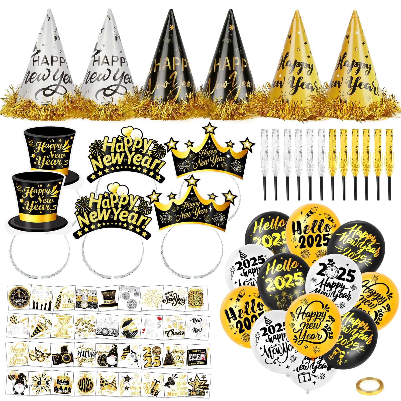 | HOWAF Dekoracje noworoczne 2025, noworoczne czapki 2025, opaska na głowę Nowy Rok 2025, okulary noworoczne 2025, tymczasowe tatuaże szczęśliwego nowego roku 2025 na gadżety noworoczne 2025, czarne Czarne złoto | B0CJ2D4NSG | 1 | 2.95 | 49.3 | |