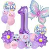 | ALEGRE Motyl dekoracja na 1. urodziny dziewczynki, fioletowe motyle, dekoracja urodzinowa, balon foliowy 1, motyw motyla, dekoracja z balonem z cyframi 1 i balonem Happy Birthday | B0DY7GCQFH | 1 | 1.35 | 31.79 | |