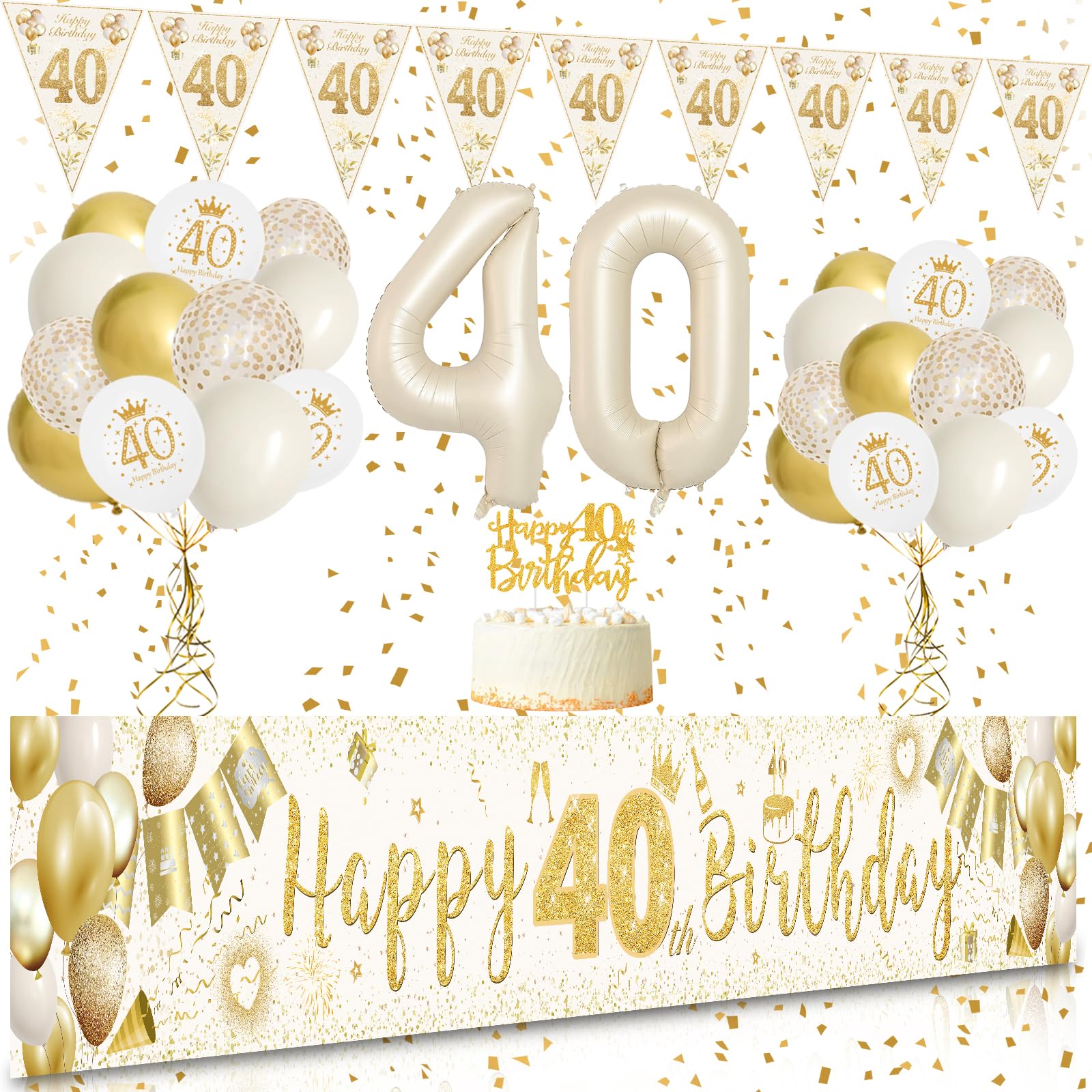 | VICTERR dekoracja na 40 urodziny dla kobiet, piaskowo-biała, złota dekoracja na 40. urodziny, dla kobiet i mężczyzn, długi rozmiar Happy 40th Birthday, baner tło 274 × 37 cm, girlanda proporczyki, | B0C7GHBWC8 | 27 | 75.06 | 1501.47 |