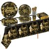 | Lets Joy Happy New Year zestaw naczyń imprezowych, 81 sztuk, zestaw dekoracyjny sylwestrowy, czarne i złote naczynia imprezowe, dekoracja sylwestrowa, serwetki, obrusy, kubki papierowe, zastawa Sylwester | B0C3748CBJ | 8 | 23.32 | 466.48 | |