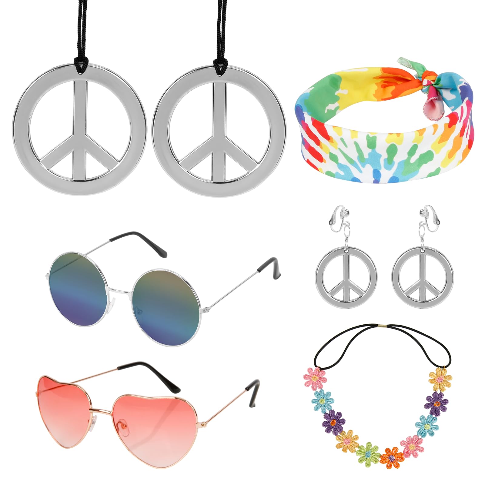 | LAMEK Zestaw 7 akcesoriów hipisowskich, kostium hipisowski, lata 60., 70., akcesoria w stylu retro, akcesoria do kostiumu z okularami, naszyjnik, opaska na czoło, kolczyki dla mężczyzn i kobiet, na | B0CDBCMFWV | 92 | 160.7 | 3571.44 | |
