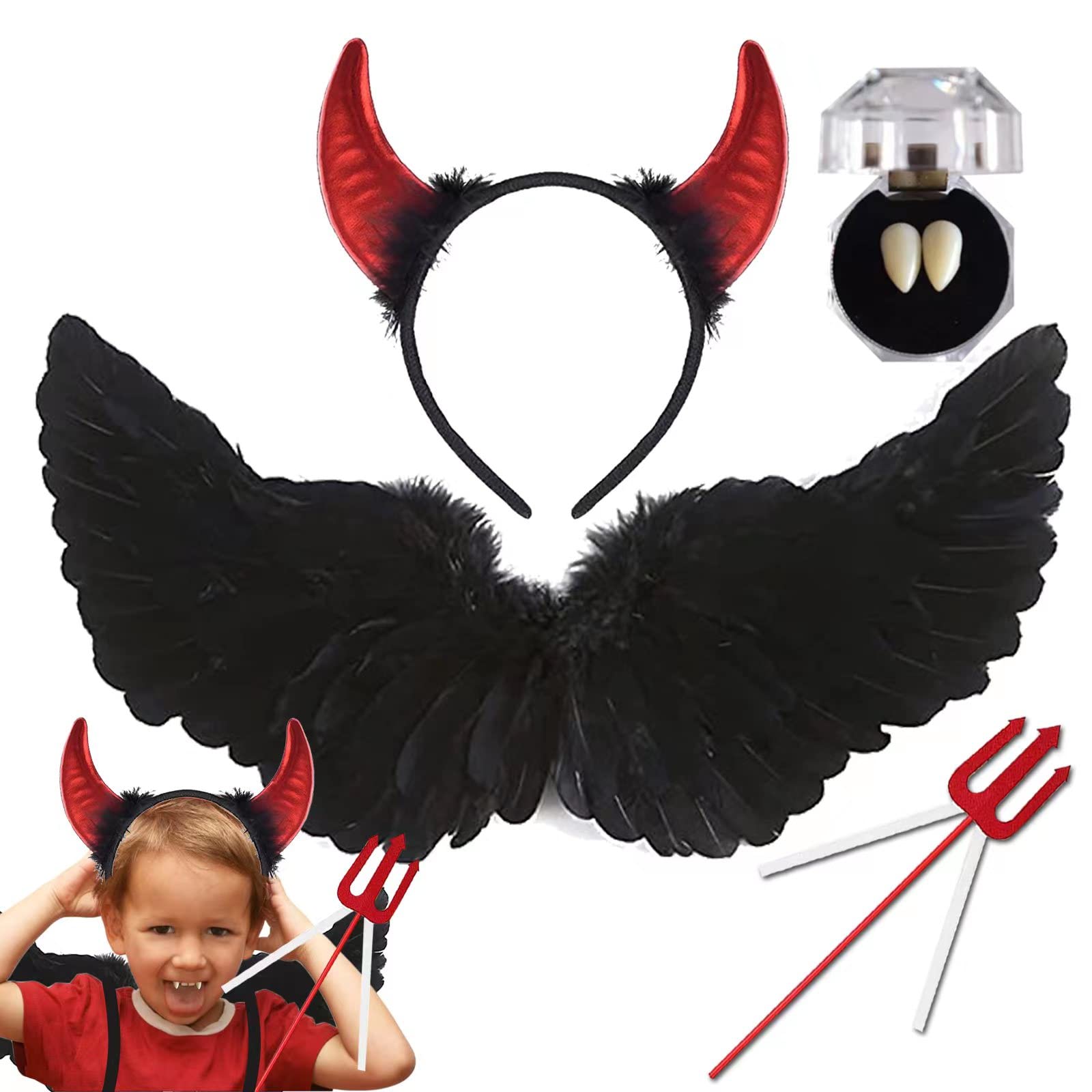 | BARVERE Black Wings, zestaw Evil Angel Anioł, diabeł, dekoracja na Halloween, impreza tematyczna, zestaw dekoracyjny z czarną aurą, diabelskie rogi, diabelskie zęby i trójkąty Demon suit średni | B0B4Z88Q48 | 74 | 280.89 | 4012.28 | |