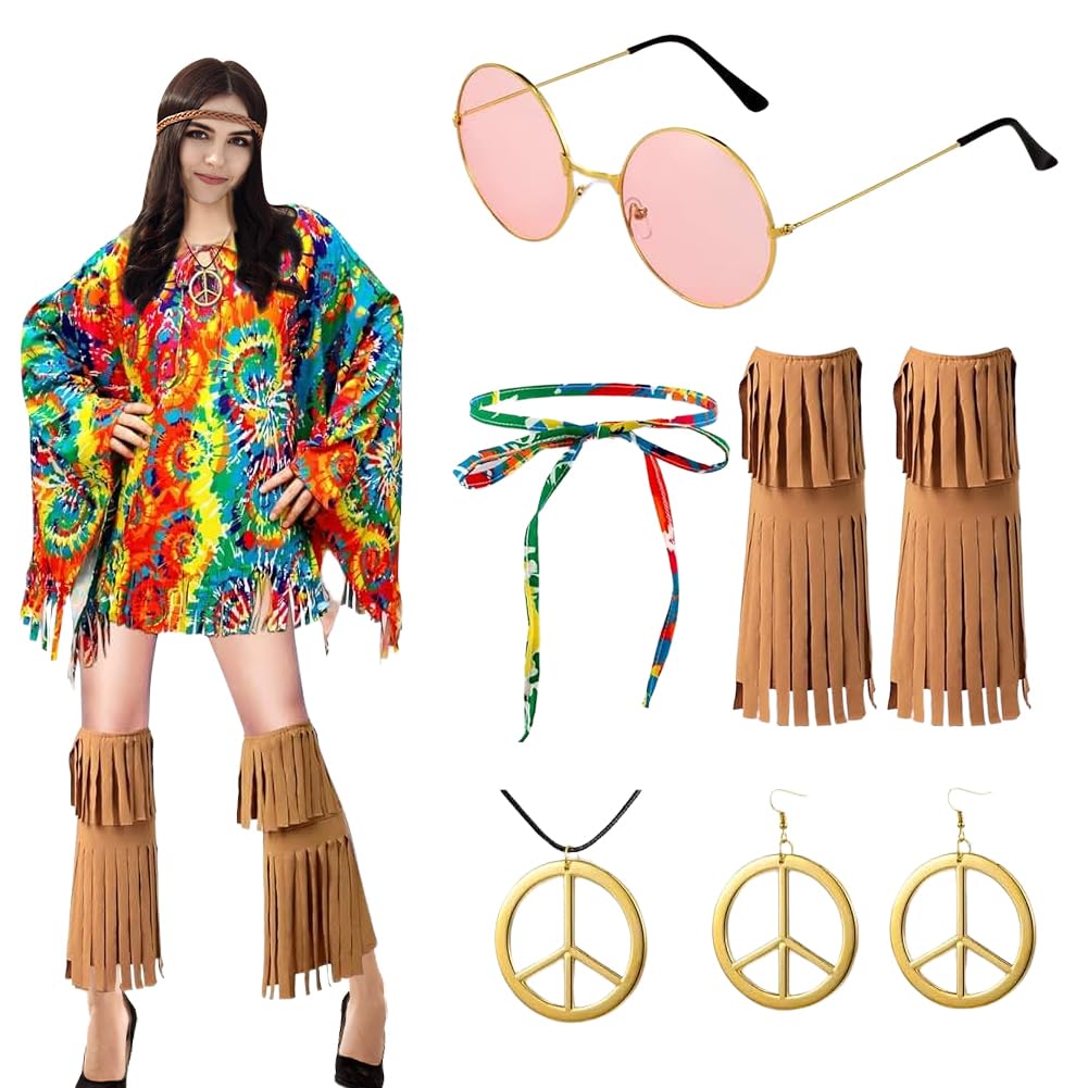 | CEWROM Zestaw kostiumu hipisowskiego w stylu lat 70., kostium hipisowski dla kobiet, kostium psychodeliczny hippie, ponczo hipisowskie, lata 60. 70., na imprezę, kostium na karnawał, imprezę | B0CKZ8BBHZ | 9 | 18.57 | 488.79 |